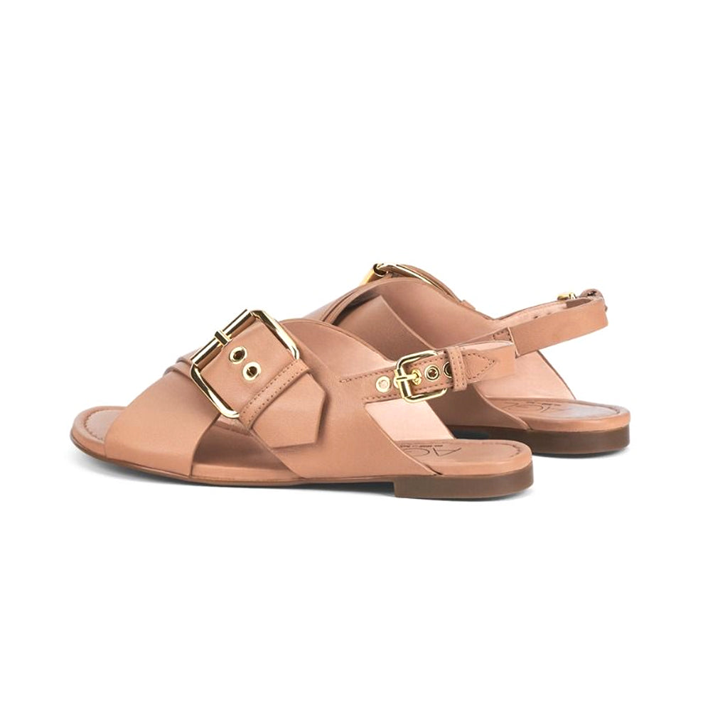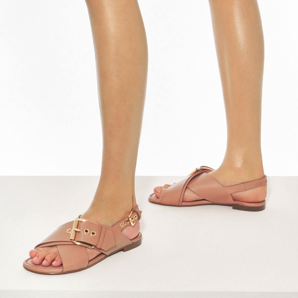 Style and comfort converge seamlessly in the new SUMMER CRISS CROSS sandal. The adjustable back strap ensures a perfect, customized fit, while the durable rubber sole provides all-day grip and lightness. The maxi gold-toned buckles on the upper add a touch of glamour and modernity.