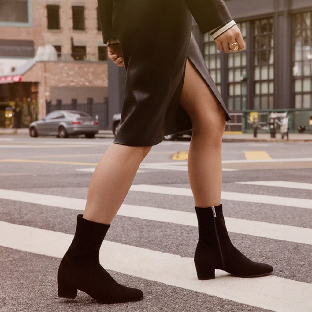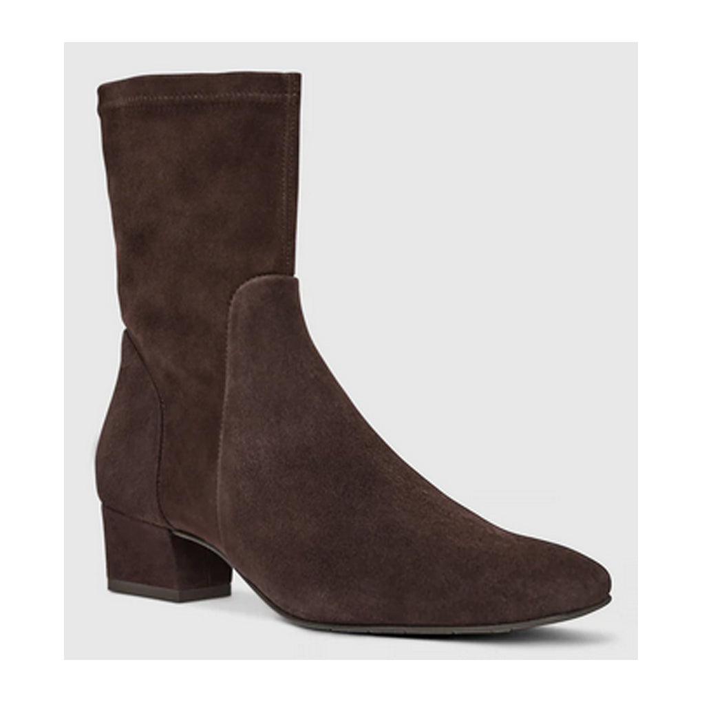 Strike the perfect balance between fashion and function in the Stassie booties. Constructed from water-resistant stretch suede that molds to your foot, these sock-style boots have smooth rounded toes and a covered block heel that provides 1.5 inches of comfortable lift. Your feet will surely stay warm all day due to the cozy thermal lining